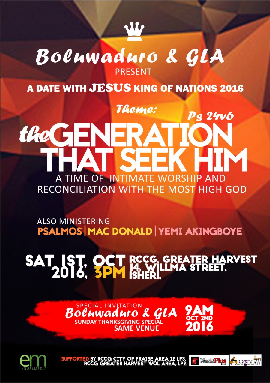 Boluwaduro & GLA Present ‘A Date With #JESUS KING Of Nations 2016’ | OCT 1st, 2016