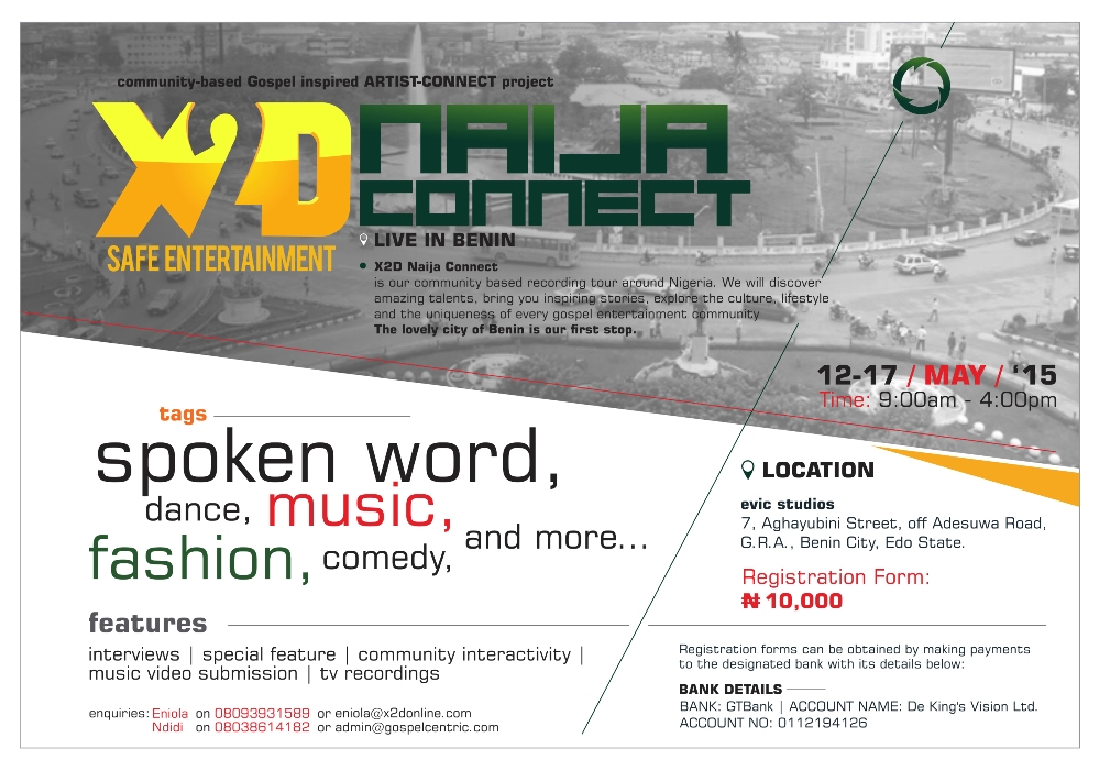 X2D, will be spending an entire week with the gospel creative community in Benin City between May 11-17, 2015.