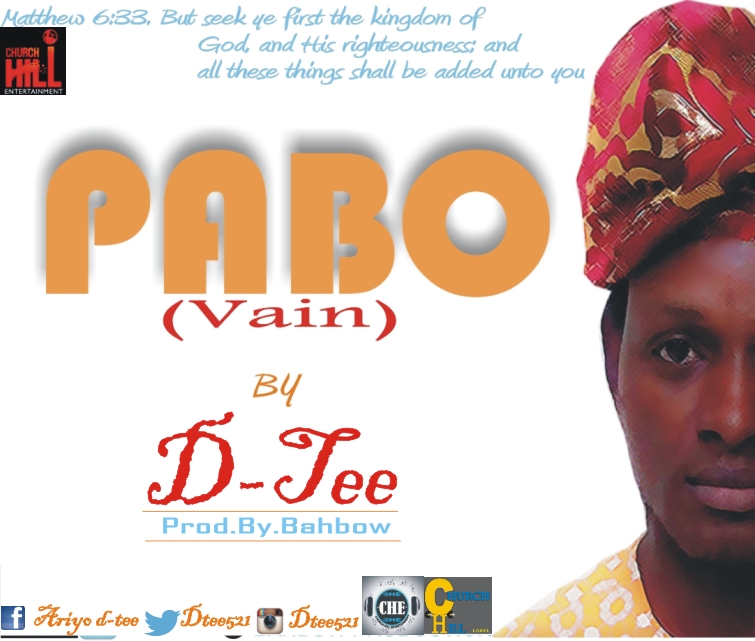 After the release of his first single Kabi o Osi, this fast rising star DTee who’s endowed with a unique voice is here again with a beautiful piece titled Pabo. Pabo is the Yoruba meaning of Vain or vanity.