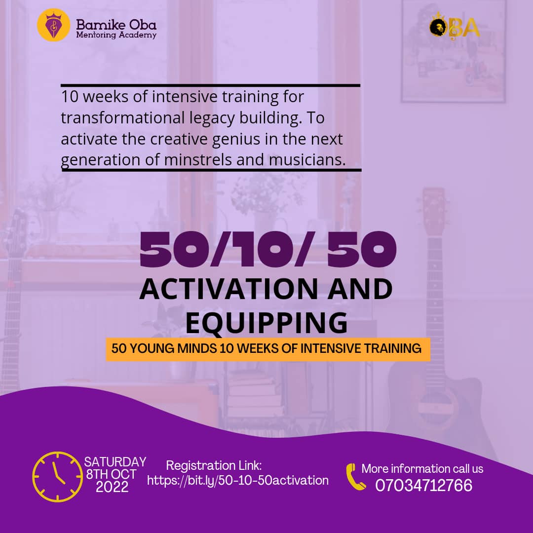 Enrolled participants, having concluded the training/mentorship program will be showcased to the world at Oba’s 50th Celebration Concert and Album launch which is set hold in December.