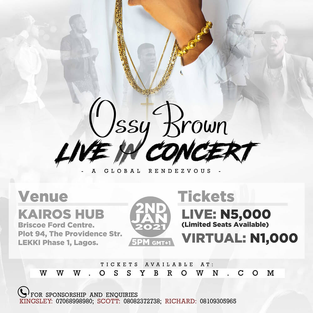 Announced with a trailer video (see below), ‘Ossy Brown Live in Concert‘ is going to be a Global Rendezvous with a Live Audience in Lagos, Nigeria, and a Virtual Audience from across the globe.