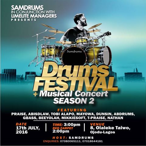 Ace Drummer SamDrums in conjunction with Limelite Managers are back with the second edition of Drums Festival Nigeria, a Gospel Drums show and Musical concert which involves both popular and upcoming drummers.