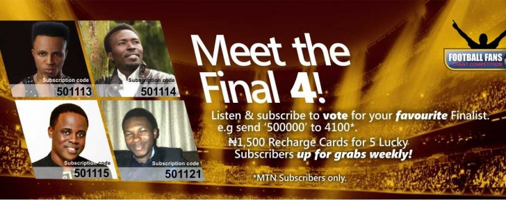 In the spirit of Football, fans across Nigeria were asked to record and upload a football-themed chant for the Football Fans Chant Competition. The winner goes home with 5 MillionNaira and a chance to do a video remix of their chant with any Nigerian music star. The otherTop 10 finalists win N500,000 each.