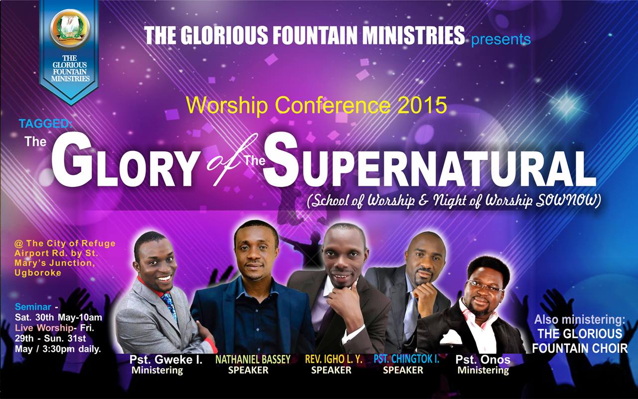 The Glorious Fountain Ministries presents WORSHIP CONFERENCE 2015 tagged ” The Glory of the Supernatural” | @teamGFM
