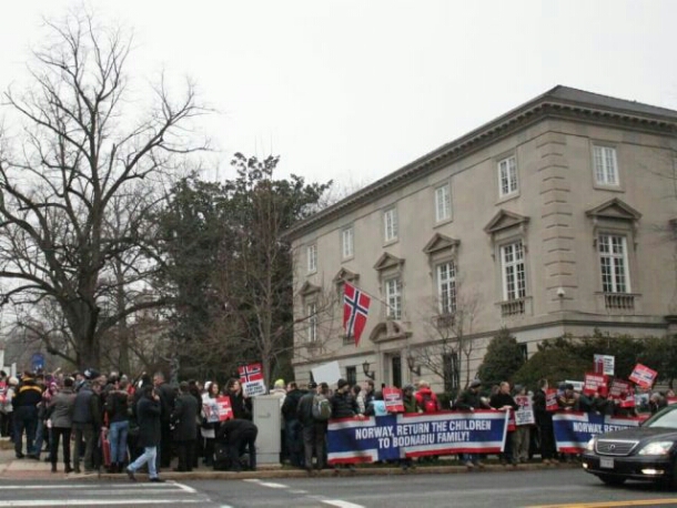 Hundreds of supporters gathered outside the Norwegian Embassy in Washington. Supporters who know the family told reporters that the claims that the children were abused is unproven and added that the Bodnariu family is one of thousands of “normal” families suffering because of the unjust actions of Barnevernet.